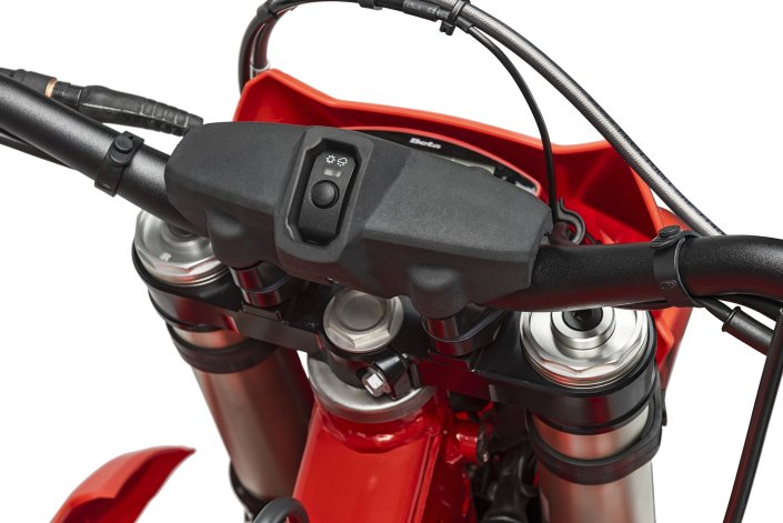 Handlebar map switch: the map switch button, placed on the handlebar for the first time last year, is confirmed in the same position, just as in Beta’s MX models, inside the handlebar pad.